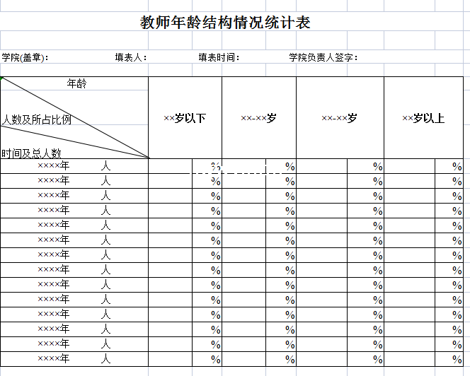 标题:学院教师年龄结构情况统计表-Excel表格