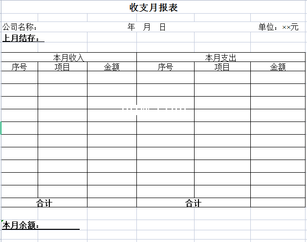 标题:收支月报表-Excel表格