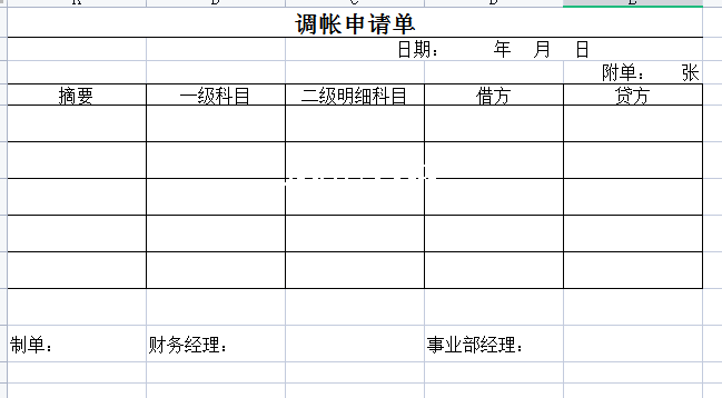 标题:调帐申请单-Excel表格