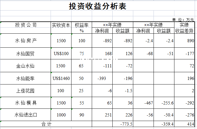 标题:投资收益分析表-Excel表格