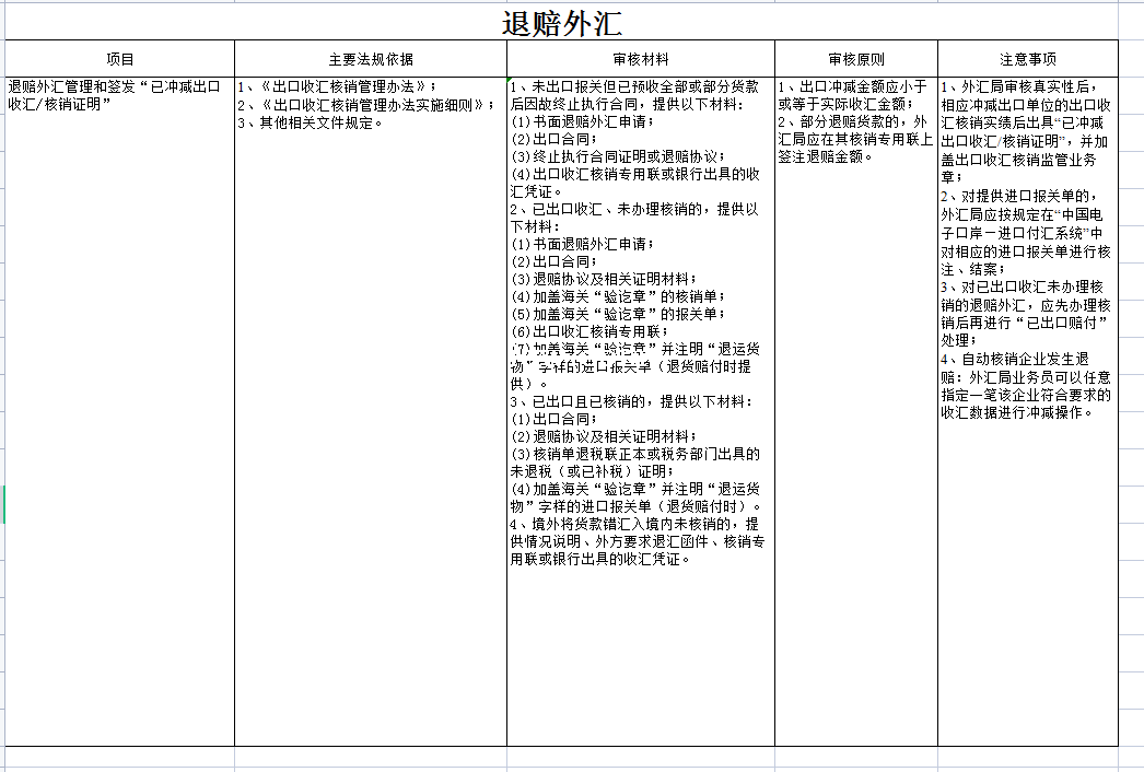 退赔外汇-Excel表格
