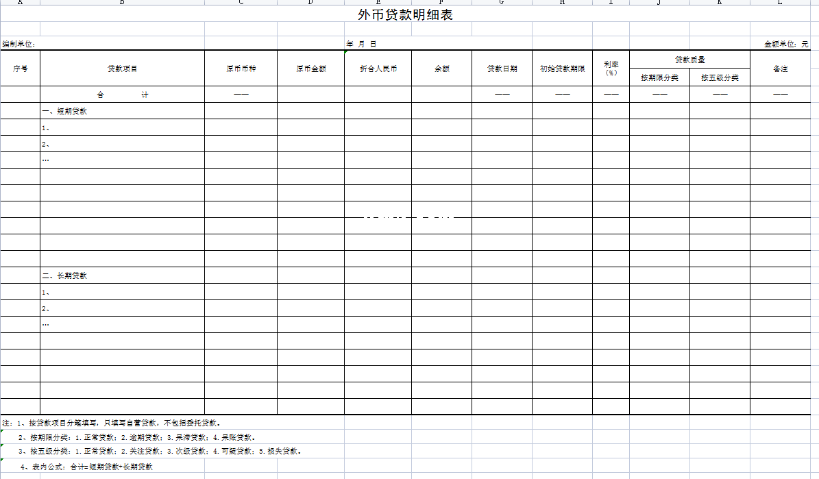 标题:外币贷款明细表-Excel表格