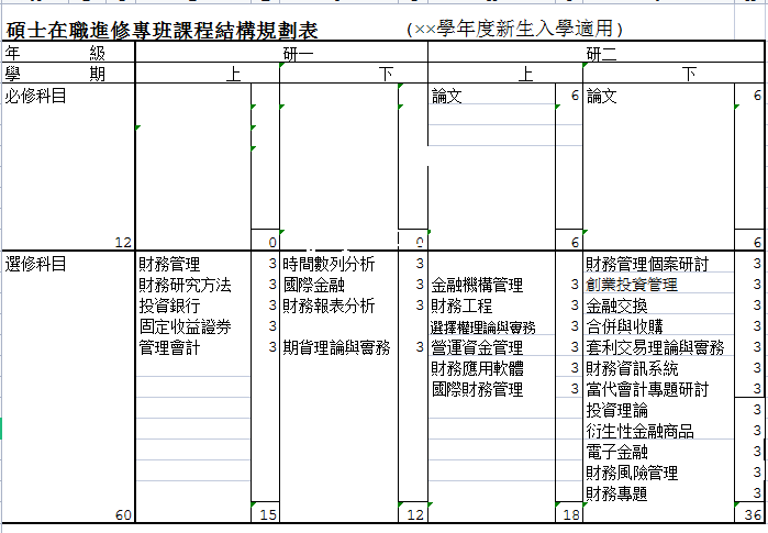 标题:碩士在職進修專班課程結構規劃表-Excel表格