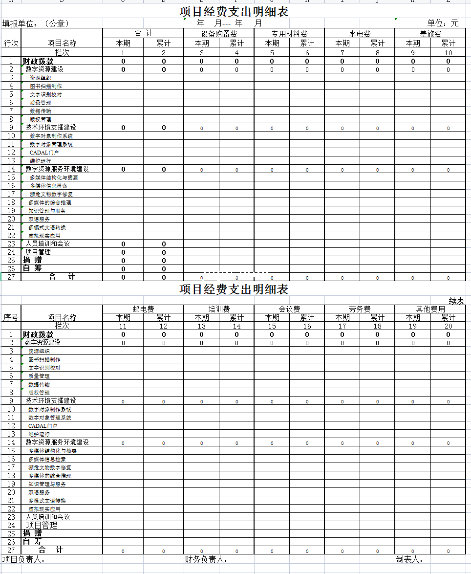 项目经费支出明细表-Excel表格