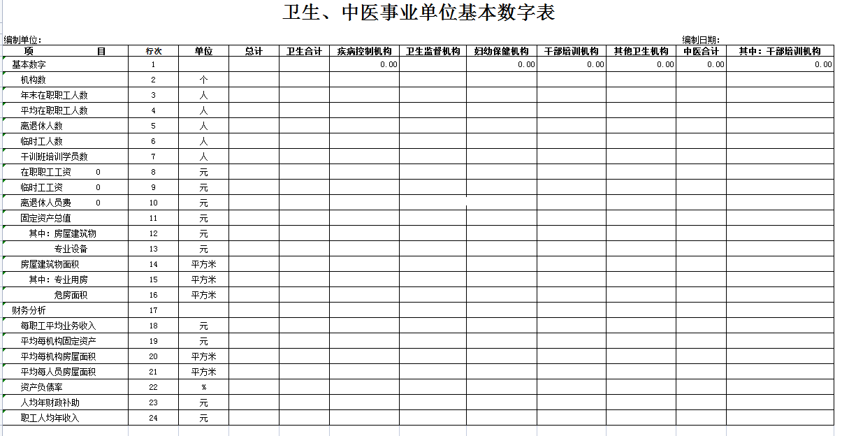 标题:卫生、中医事业单位基本数字表-Excel表格