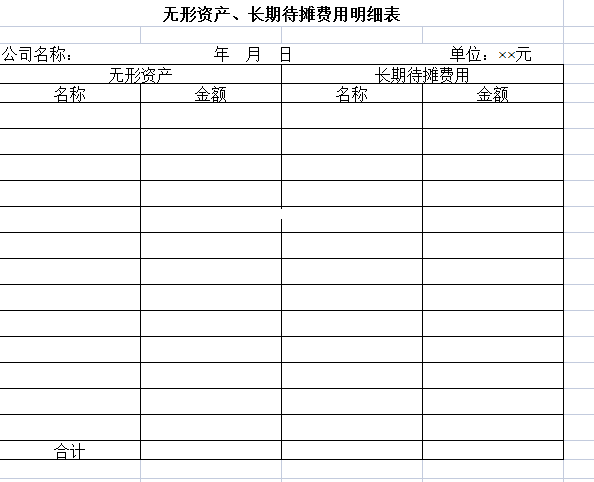 标题:无形资产、长期待摊费用明细表-Excel表格
