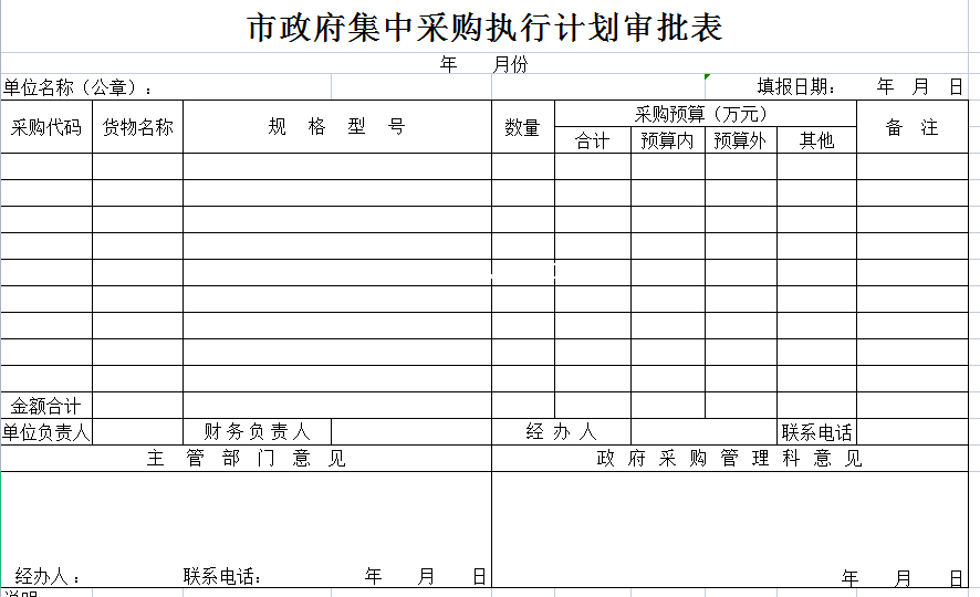 市政府集中采购执行计划审批表-Excel表格
