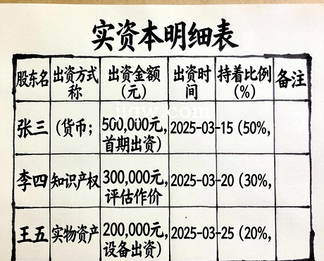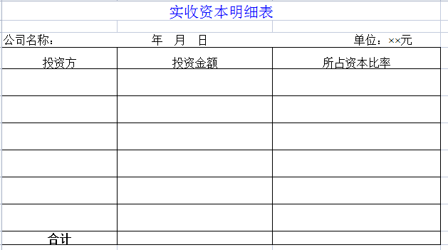 标题:实收资本明细表-Excel表格