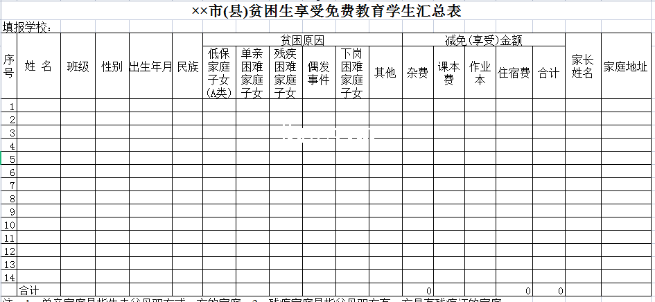 市县贫困生享受免费教育学生汇总表-Excel表格