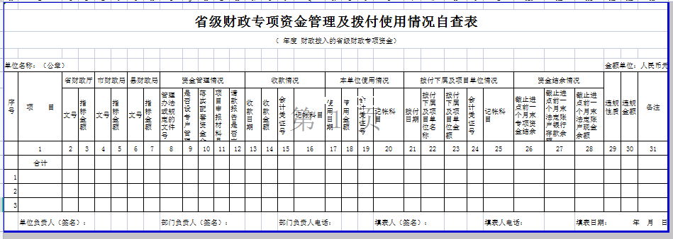 标题:省级财政专项资金管理及拨付使用情况自查表-Excel表格