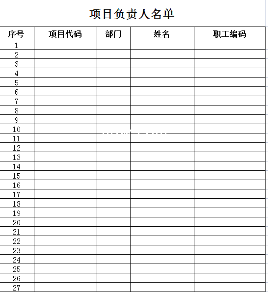 标题:项目负责人名单-Excel表格