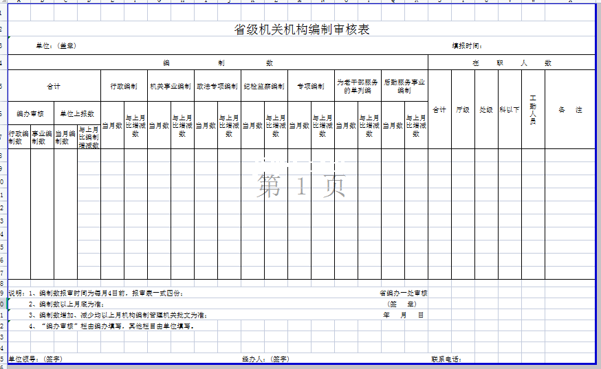 标题:省级机关机构编制审核表-Excel表格