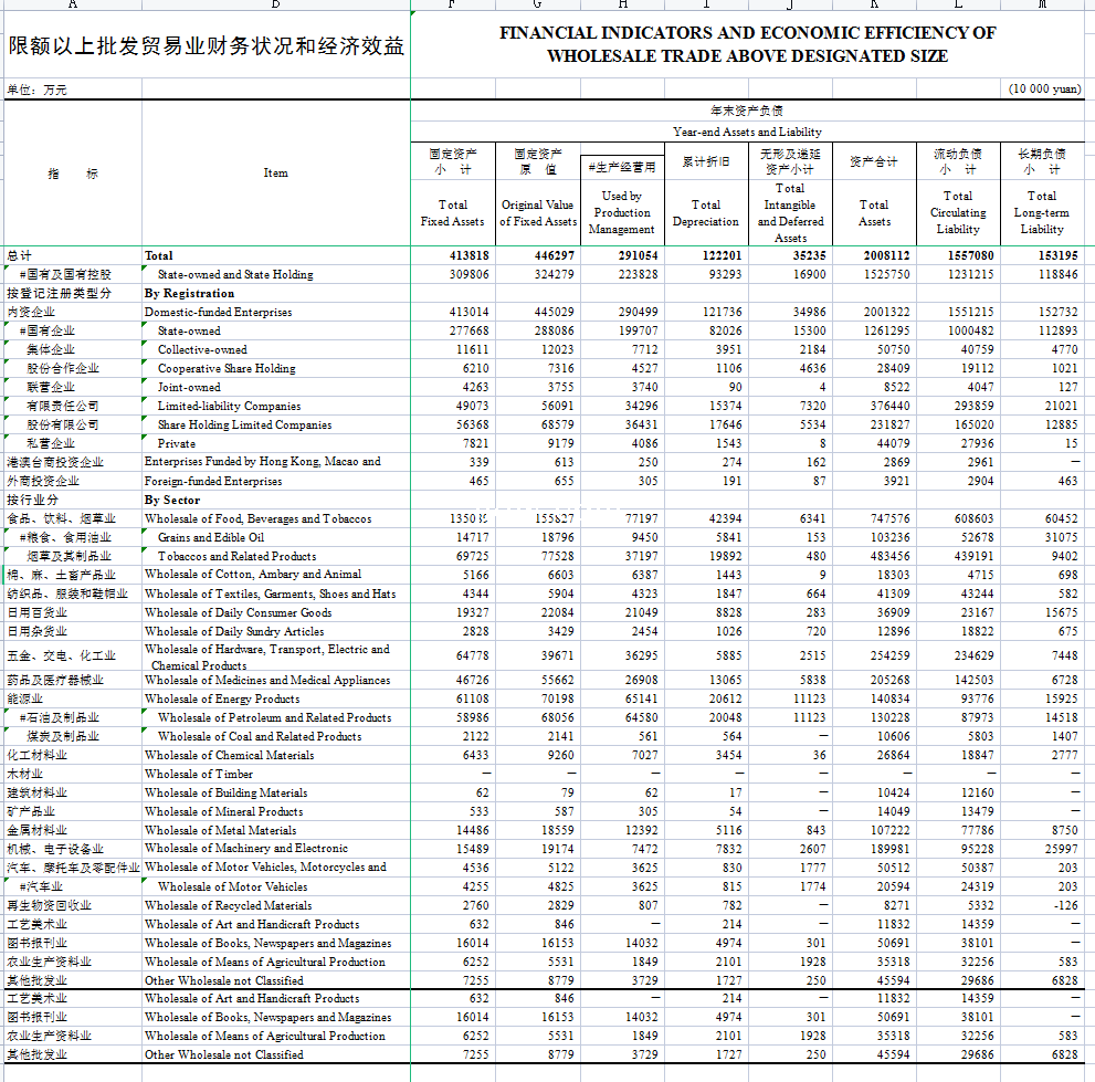 限额以上批发贸易业财务状况和经济效益-Excel表格