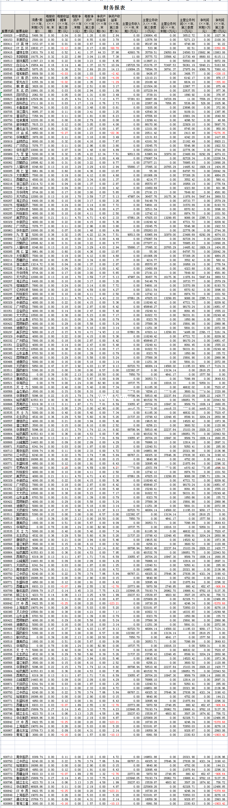 标题:上市公司财务指示-Excel表格