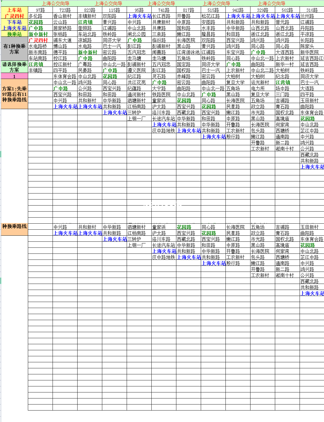 上海公交向导-Excel表格