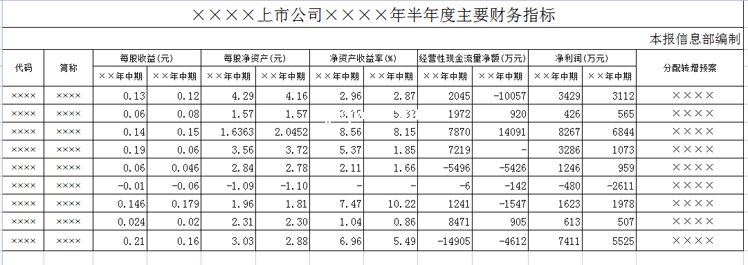 标题:上市公司半年度主要财务指标-Excel表格