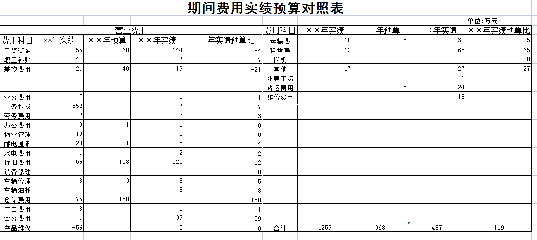 期间费用实绩预算对照表-Excel表格