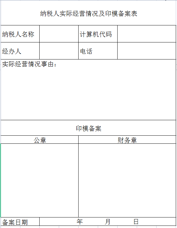 标题:纳税人实际经营情况及印模备案表2-Excel表格