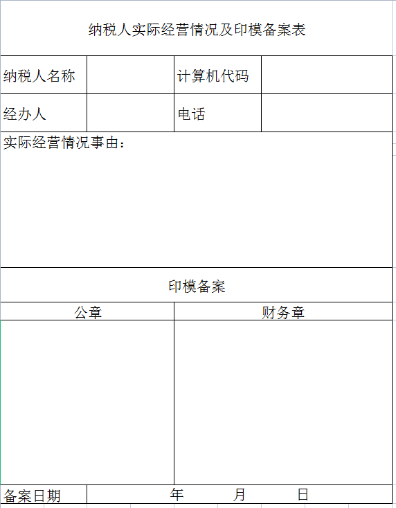 标题:纳税人实际经营情况及印模备案表-Excel表格