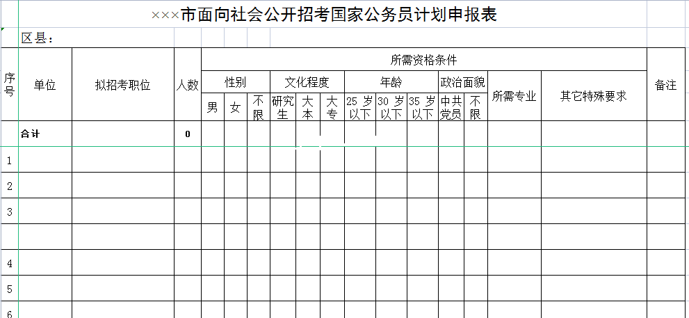 面向社会公开招考国家公务员计划申报表-Excel表格