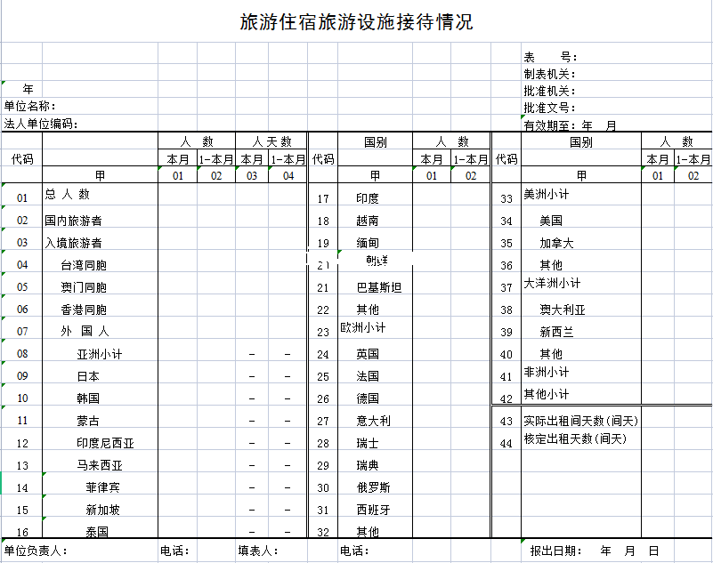 标题:旅游住宿旅游设施接待情况-Excel表格