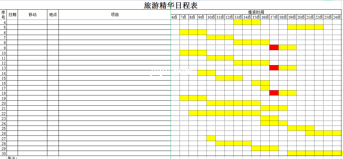 旅游精华日程表-Excel表格