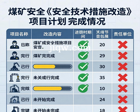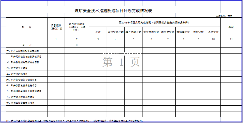 标题:煤矿安全技术措施改造项目计划完成情况表-Excel表格