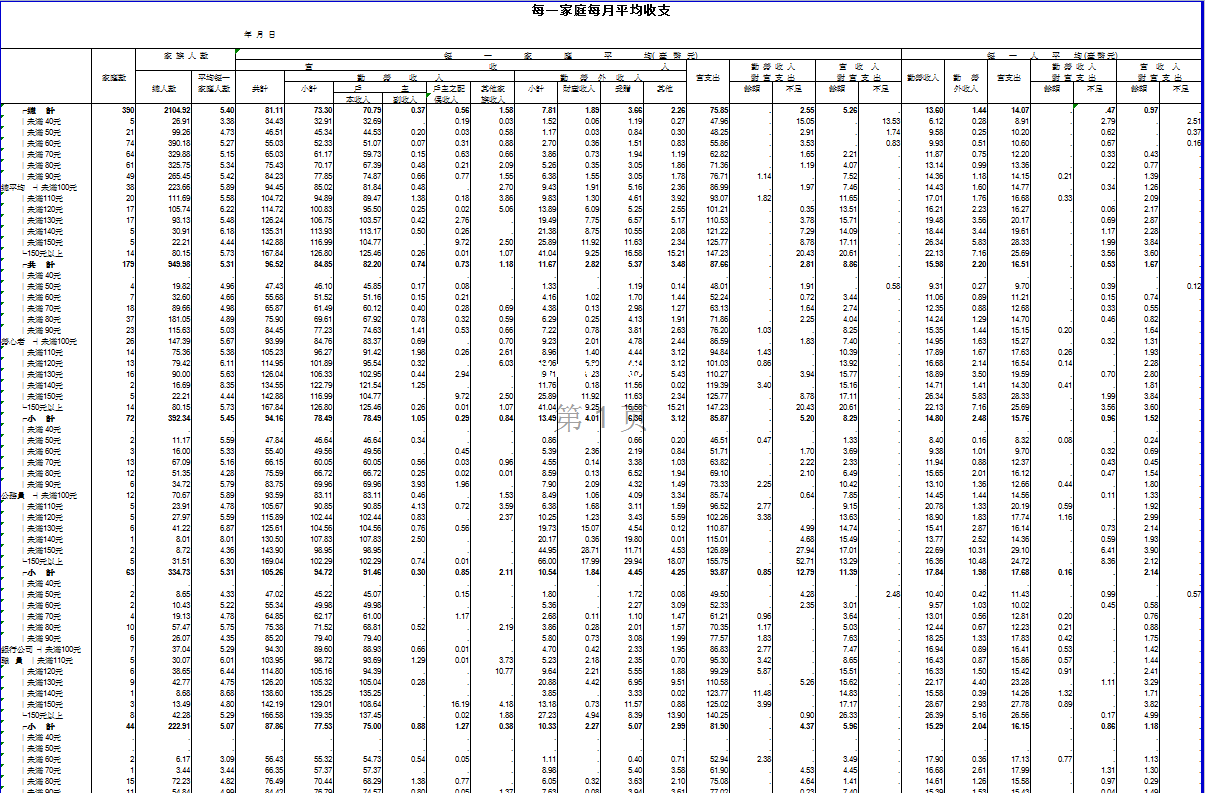 每一家庭每月平均收支-Excel表格