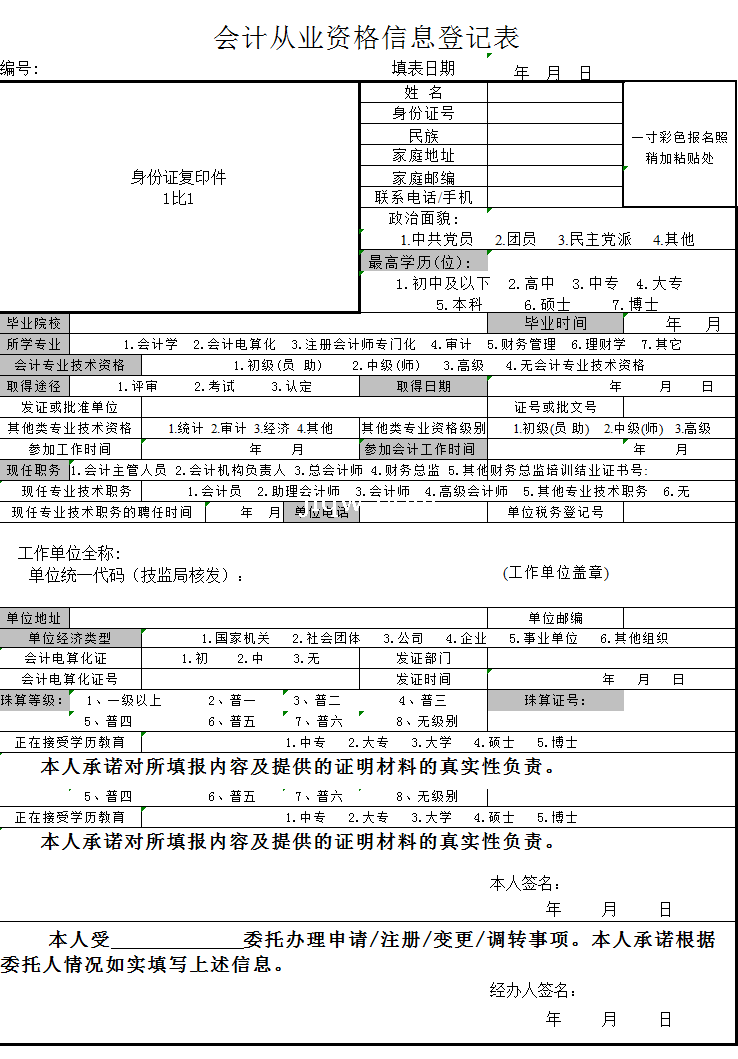 会计从业资格信息登记表-Excel表格