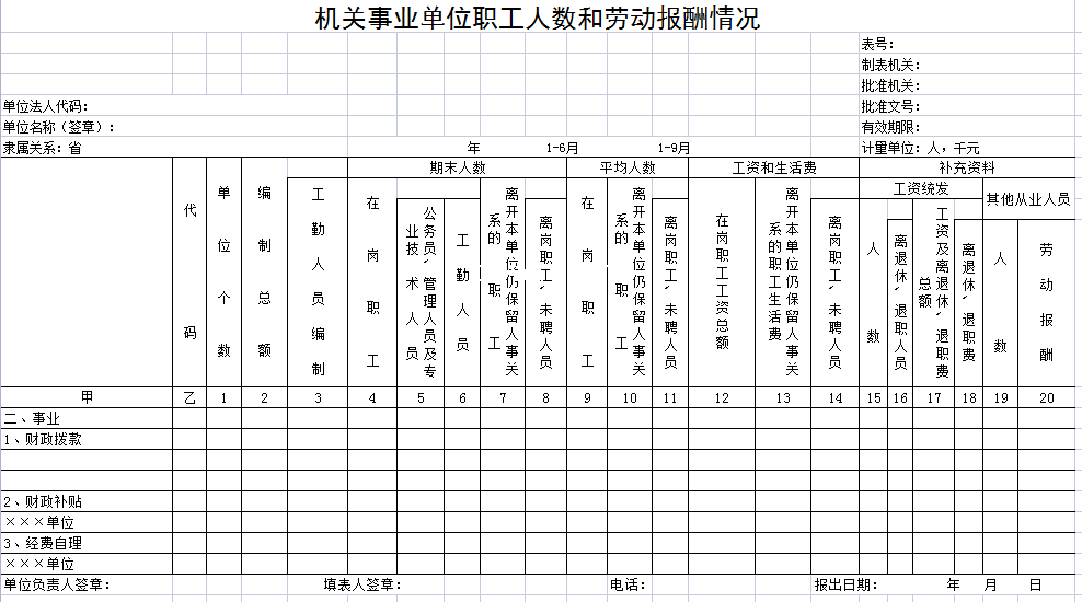 机关事业单位职工人数和劳动报酬情况-Excel表格