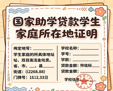 标题:国家助学贷款学生家庭所在地证明-Excel表格