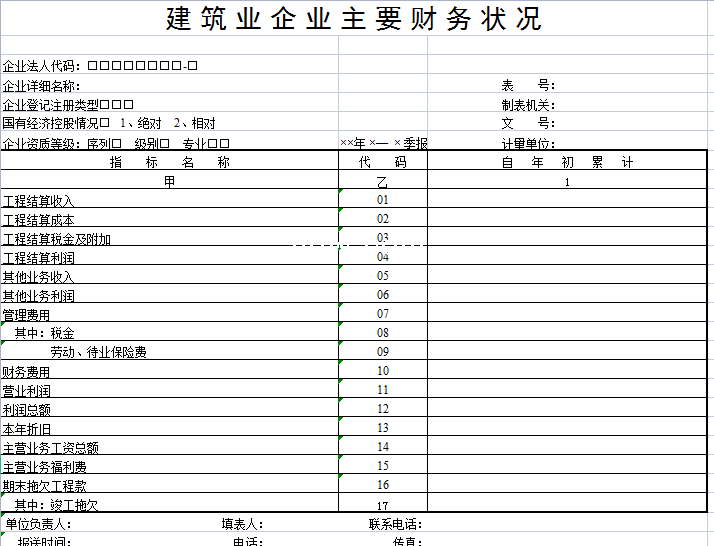 建筑业企业主要财务状况-Excel表格