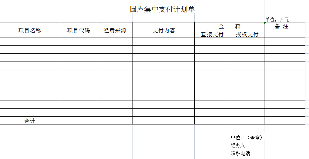 国库集中支付计划单-Excel表格
