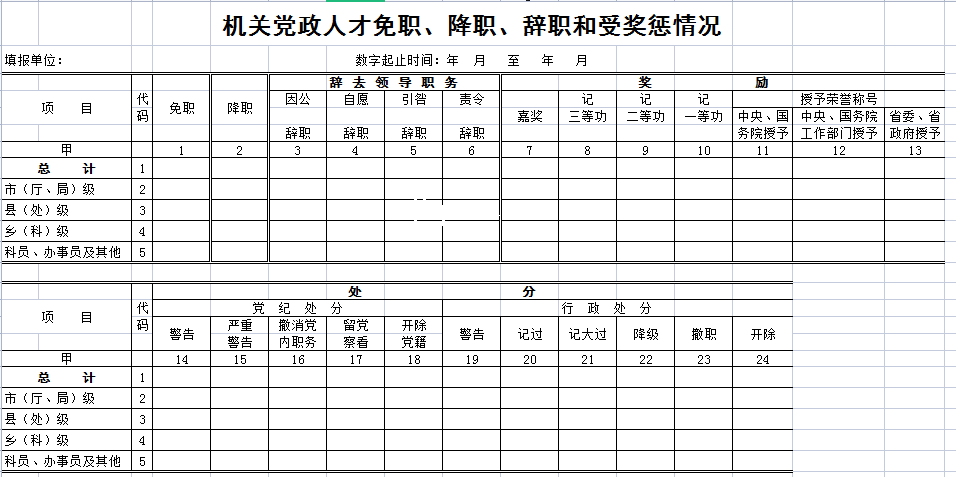 机关党政人才免职、降职、辞职和受奖惩情况-Excel表格