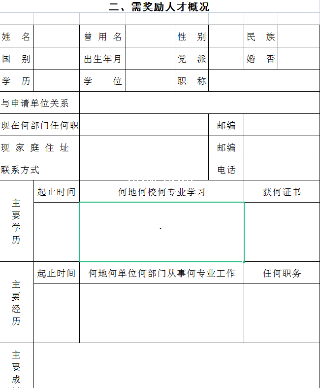 奖励有突出贡献人才资金资助申请书-Excel表格