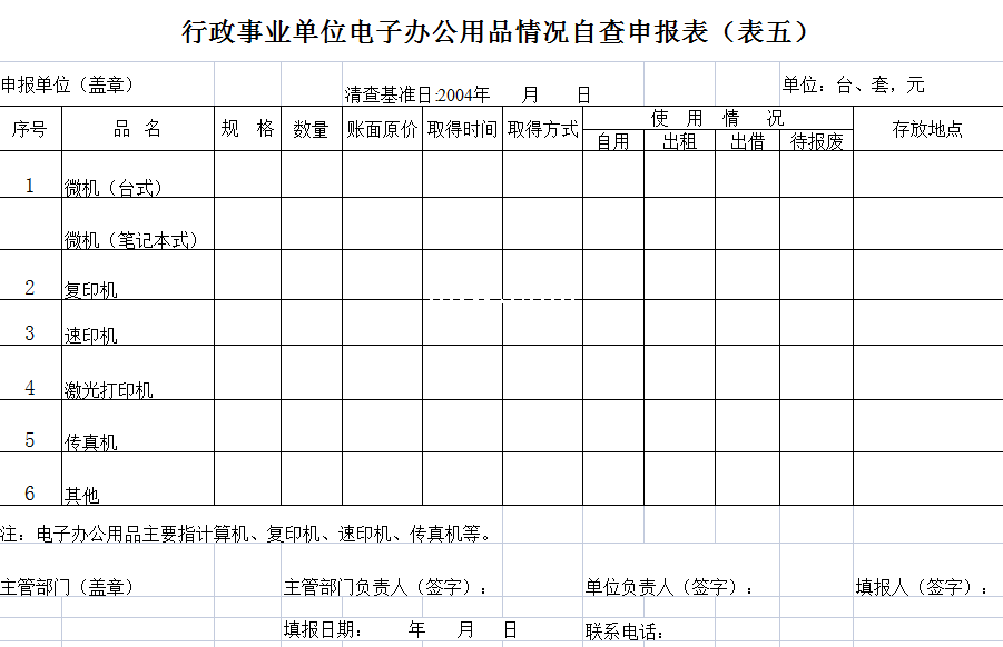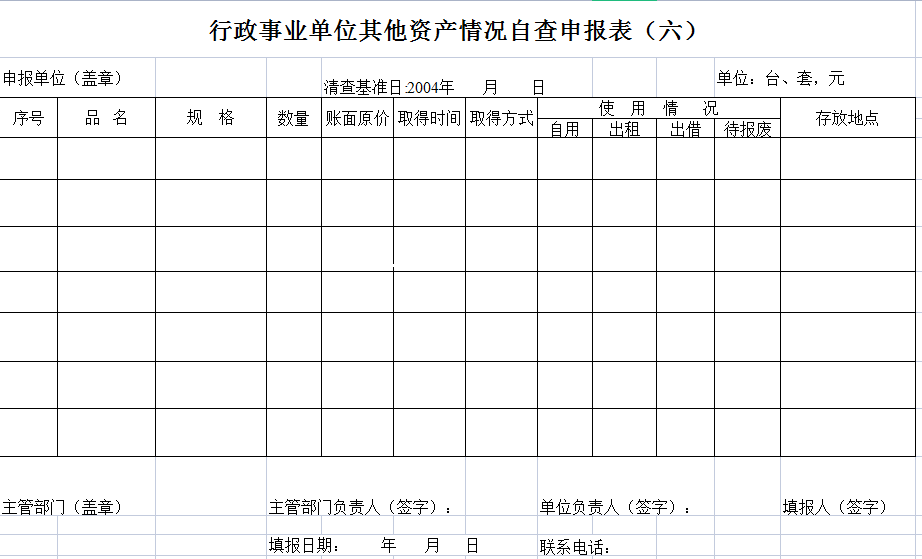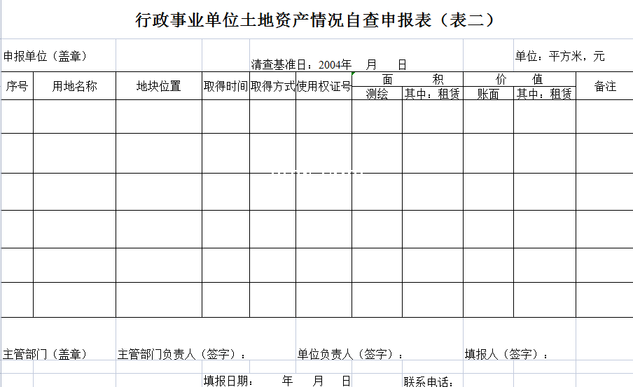 标题:行政普查申报-Excel表格