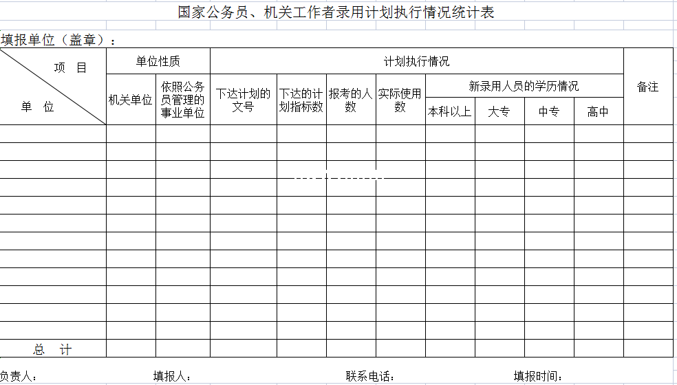 国家公务员机关工作者录用计划执行情况统计表-Excel表格