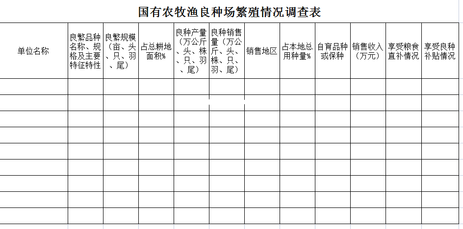 标题:国有农牧渔良种场繁殖情况调查表-Excel表格