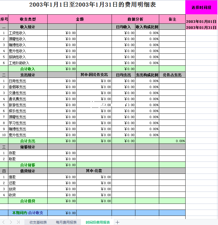 标题:个人收支管理-Excel表格