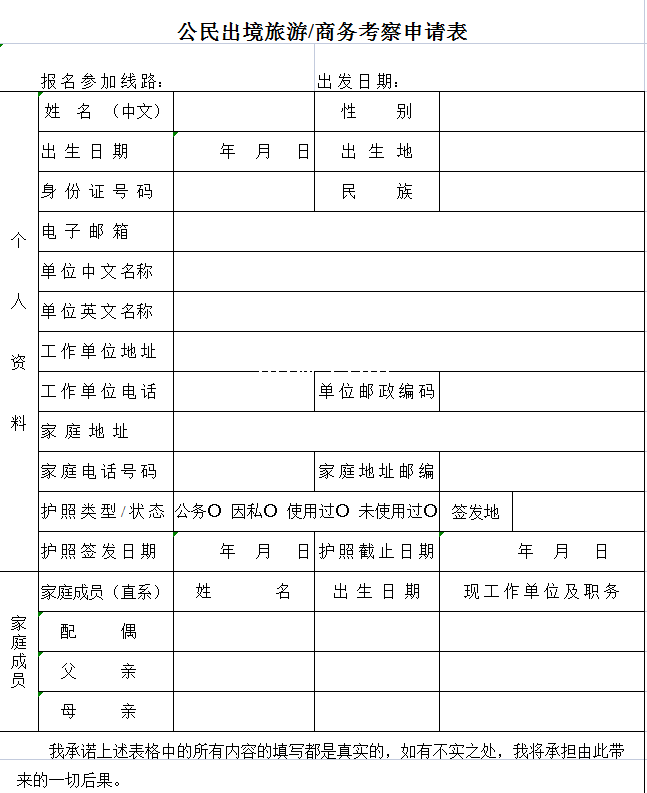 公民出境旅游商务考察申请表-Excel表格