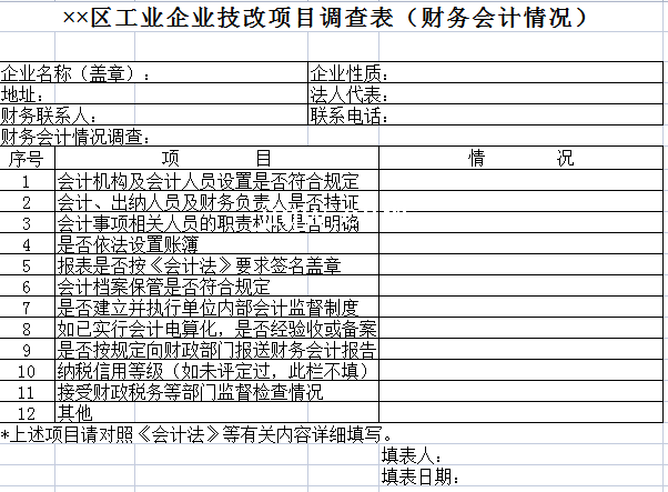 工业企业技改项目调查表(财务会计情况)-Excel表格