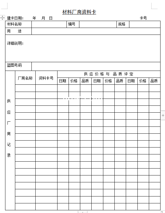 材料厂商资料卡-Word文档
