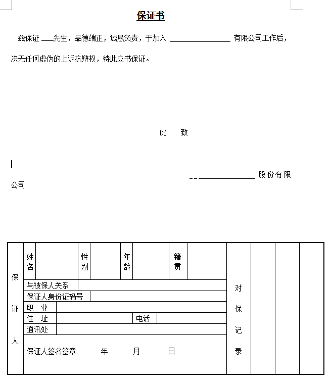 第六节 保证书-Word文档