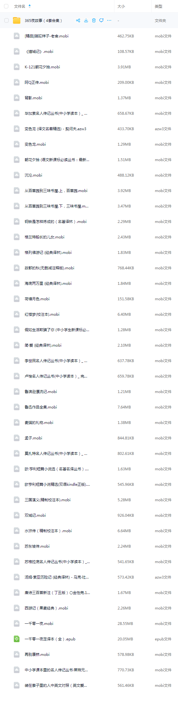 【极全网】中小学必读书目等多个文件云存储资源下载目录1个子文件夹0个文件4个