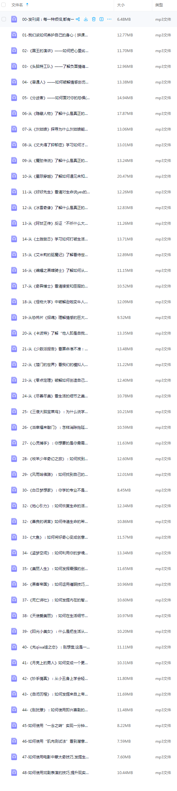 【极全网】柠杨 看电影懂心理学48讲(完结)云存储资源下载目录1个子文件夹0个文件4个
