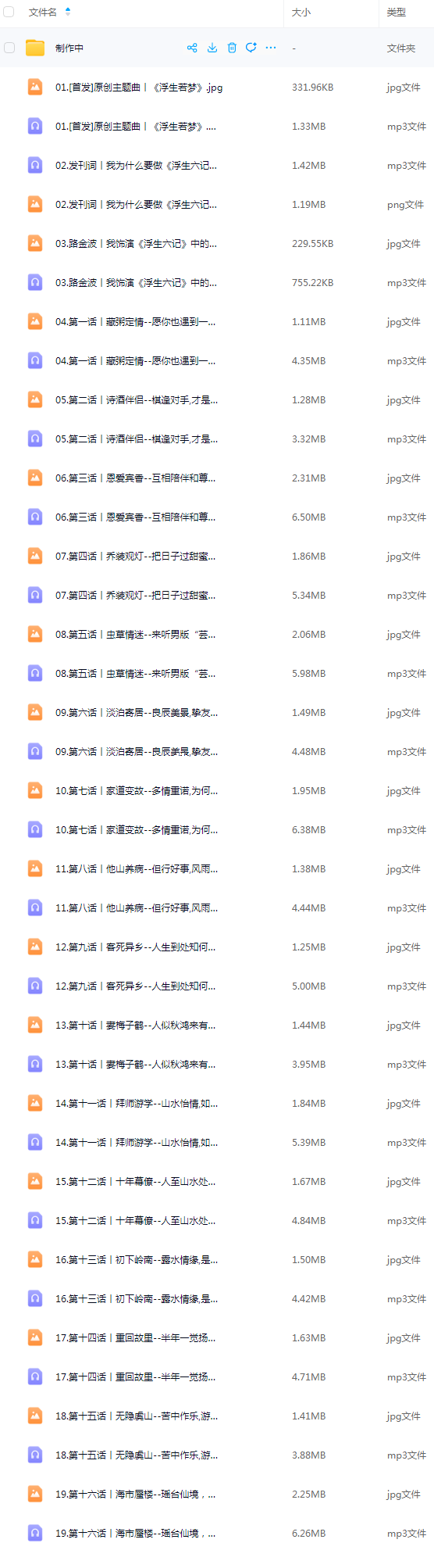 【极全网】李蕾《李蕾《浮生六记》声音剧》云存储资源下载目录1个子文件夹0个文件4个