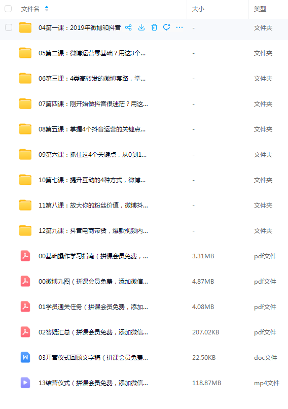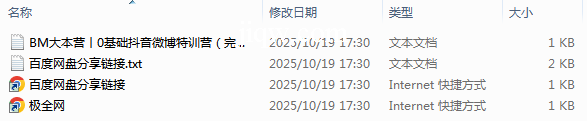 【极全网】BM大本营丨0基础抖音微博特训营(完结)云存储资源下载目录1个子文件夹0个文件4个