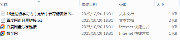 【极全网】16堂超级学习力(完结)云存储资源下载目录1个子文件夹0个文件4个