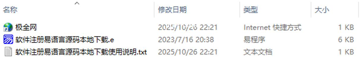 【极全网】软件注册易语言源码本地下载目录1个子文件夹0个文件3个