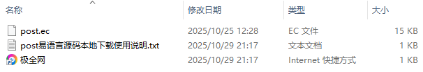 【极全网】post易语言源码本地下载目录1个子文件夹0个文件3个
